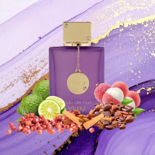 Club De Nuit Maleka de Armaf es una fragancia femenina audaz y sofisticada que combina una apertura jugosa y chispeante con un corazón floral cremoso y un fondo cálido, dulce y sensual. Es una expresión de feminidad moderna, elegante y con carácter.